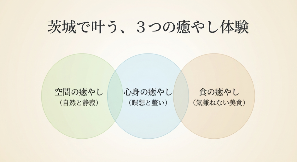 茨城には、日帰りでふらっと行ける穴場のスポットや、静かに読書を楽しめる隠れ家のようなブックカフェ、さらには絶品グルメや癒やしの温泉宿がたくさんあります。電車で窓の外の景色を眺めながらのんびり向かうのもいいですし、車で自分の好きな音楽をかけながらのドライブ旅も最高かなと思います。今回は、私が独自にリサーチして気になった、ソロトラベラーにぴったりのスポットやリトリート体験をたっぷりご紹介しますね。