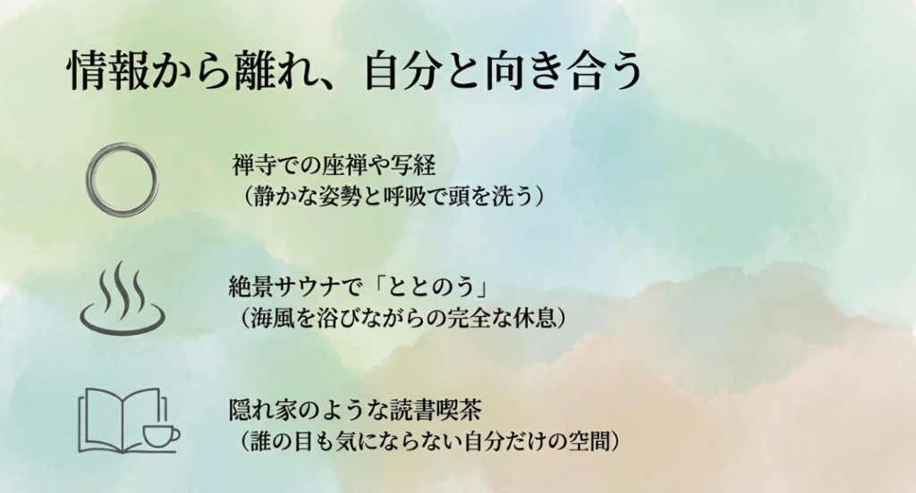 また、結城市にある禅寺「孝顕寺」では、地域の宿泊施設と連携して、坐禅体験と宿泊がセットになった独自のプランを提供していることもあるんです。「ただ景色を見て回る観光」から一歩踏み込んで、「自分自身の心を整える体験」へと旅の目的をシフトさせるには、こうした歴史ある神聖な空間はぴったりですね。仏教の教えや瞑想に触れることで、日頃のストレスに対する新しい向き合い方が見つかるかもしれません。