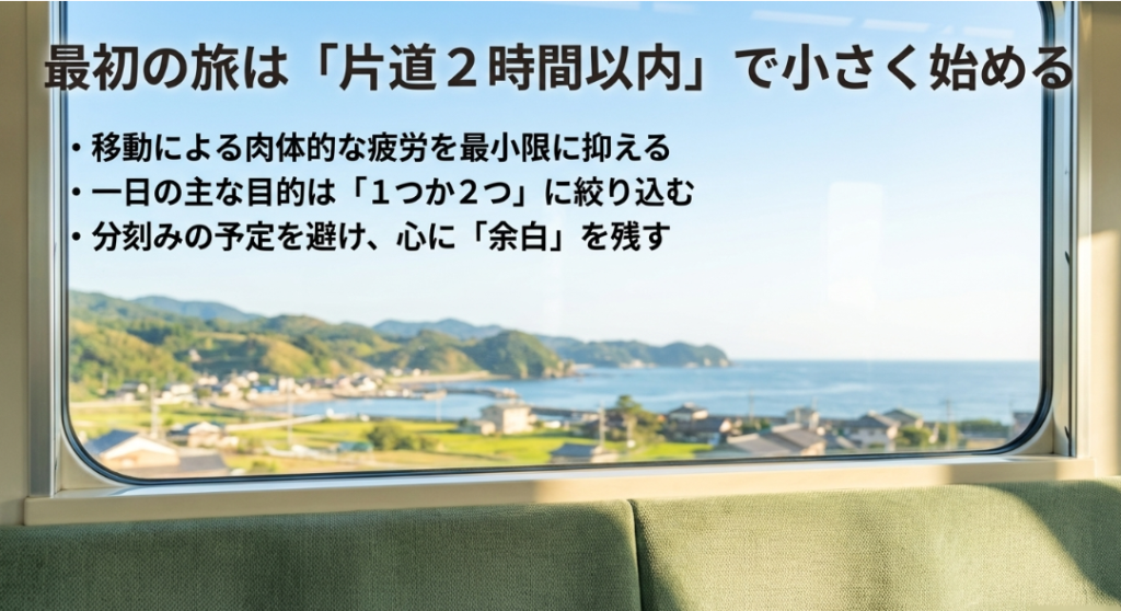 具体的なプランを立てる際のコツは、移動時間を「片道2時間以内」に収めることです。